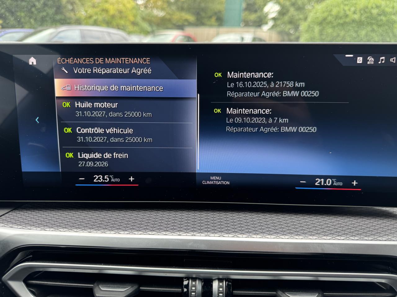 ABS, y compris assistant de freinageAccoudoir central arrièreAccoudoir central avant coulissantActive Guard PlusAirbag de tête avant et arrièreAirbag passager déconnectableAirbags frontaux AVAirbags latéraux avantApps Véhicule (météo, actualités, recherche en ligne d’adresses, infos parking, prix carburants, etc.) (3 ans)Appuis-tête arrière rabattablesAppuis-tête avant et latéraux arrière réglables en hauteurBaguettes de toit couleur carrosserieBanquette arrière rabattable 40/20/40BMW Live Cockpit Navigation PlusBMW WidescreenCapacite du réservoir augmentéeCarte SIM 4G LTE pour les Services ConnectedDriveCeintures de sécurité 3 points à toutes les placesCiel de pavillon anthraciteClés radiocommandées à mémorisation automatique des réglages "Personal Profile"Clignotants avant et arrières à LEDClimatisation automatique 3 zonesCommande électrique du volet de coffreConnexion multiple de téléphonesConsole centrale avec 2 portes gobeletContrôle de freinage en courbe CBCContrôle Dynamique de la Stabilité DSC y compris Contrôle de Motricité DTCController iDrive avec touches de raccourciDémarrage sans clé via le bouton Start/StopDétecteur de pluie et allumage automatique des projecteursDirection à assistance électrique servotronicDirection DirectDrive à démultiplication variableEclairage d'accompagnement "Follow me Home"Eclairage d'accueilEclairage dans le coffreEcrous antivolFeux arrière à LEDFeux de jour à LEDFeux de route et feux de croisement à technologie bi-LEDFilet de séparation du coffre à bagagesFonction d'arrêt et de redémarrage automatique du moteurFrein de parking électromécanique avec fonction "Automatic Hold"Inserts décoratifs en Aluminium Rombicle soulignés de chrome perléJantes alliage 18’’ style 848 M à rayons doubles, bicoloresKit EclairageKit rangementLève-vitres avant et arrière électriques avec commande par impulsion et sécurité enfantsLunette arrière intégrant le 3e feu stopMesure individuelle de pression des pneumatiquesPack Aérodynamique MPack Connected ProPoignées de portes couleur carrosseriePrises USB : type A (1,5 A) dans la console centrale / type C (3,0 A) dans l'accoudoir centralRadars de stationnement avant et arrière PDCRails de toit noir brillant BMW IndividualRéglage en largeur dossier conducteurRégulateur de vitesse avec fonction freinage et limiteur de vitesseRétroviseur extérieurs rabattables électriquementRétroviseur intérieur électrochromeRétroviseurs extérieurs avec rappels de clignotants intégrésRétroviseurs extérieurs couleur carrosserieRétroviseurs extérieurs dégivrantsSélecteur de mode de conduite - 3 modes : "ECO PRO", "Confort" et "Sport"Sellerie Alcantara / Sensatec Schwarz avec surpiqûres contrastantes bleuesShadow Line M brillantSièges avant sportSuspension DirectDriveSystème audio à 6 haut-parleursSystème de récupération de l'énergie au freinageTapis de sol en veloursTeinte de carrosserie "Alpinweiss" unieVerrouillage centralisé des portes, coffre et trappe à essenceVitres avec protection contre la chaleur et le soleilVolant M gainé cuir